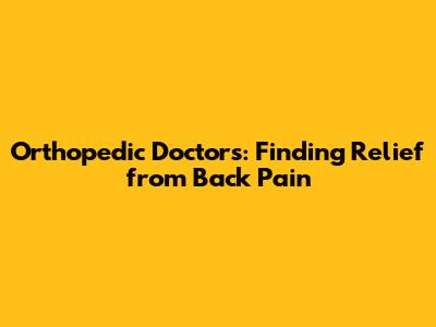 Orthopedic Doctors: Finding Relief From Back Pain