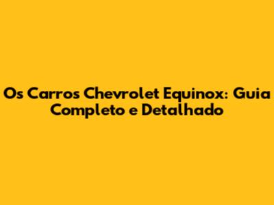 Os Carros Chevrolet Equinox: Guia Completo E Detalhado