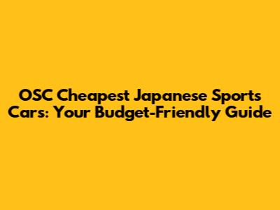 OSC Cheapest Japanese Sports Cars: Your Budget-Friendly Guide