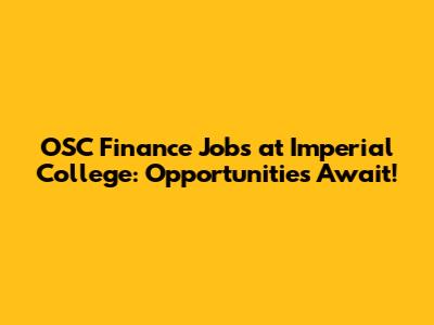 OSC Finance Jobs At Imperial College: Opportunities Await!