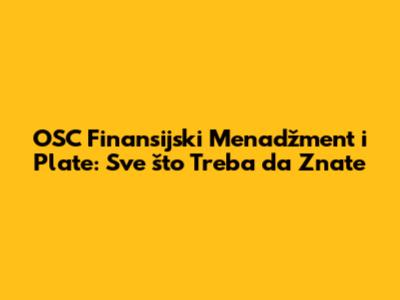 OSC Finansijski Menadžment I Plate: Sve Što Treba Da Znate