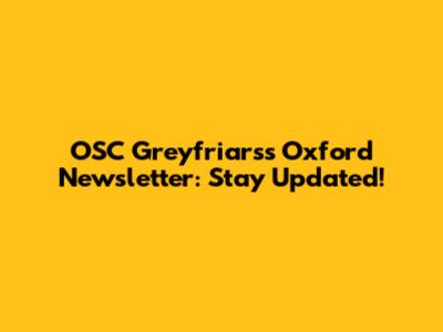 OSC Greyfriars's Oxford News: Stay Updated!