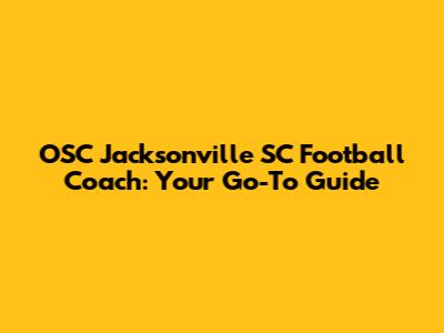 OSC Jacksonville SC Football Coach: Your Go-To Guide