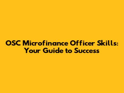 OSC Microfinance Officer Skills: Your Guide To Success