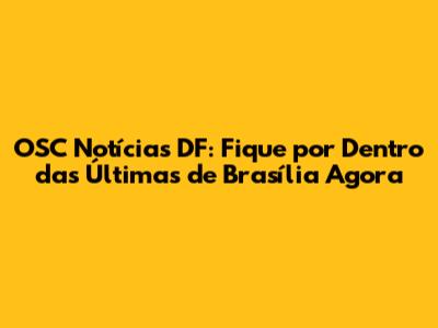 OSC Notícias DF: Últimas Novidades De Brasília Agora