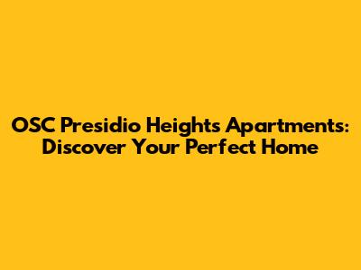 OSC Presidio Heights: Your Dream Apartment Awaits!