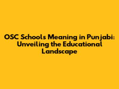 OSC Schools Meaning In Punjabi: Unveiling The Educational Landscape