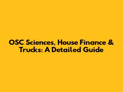 OSC Sciences, House Finance & Trucks: A Detailed Guide