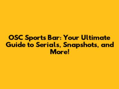 OSC Sports Bar: Your Ultimate Guide To Serials, Snapshots, And More!