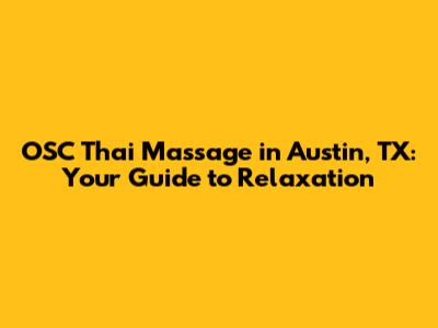 Okay, so you're sold on the idea of OSC Thai massage in Austin? Awesome! Now, let's talk about where you can find the best experiences in town. Austin is a vibrant city with a thriving wellness scene, so you've got plenty of options to choose from. When selecting a place, here are some things to consider: reputation and reviews - Always do your research! Check online reviews and testimonials to get a sense of the spa's reputation and the therapists' expertise. See what other people are saying about their experiences. Therapist qualifications - Make sure the therapists are properly trained and certified in OSC Thai massage. This ensures they have the skills and knowledge to provide a safe and effective treatment. Ambiance and atmosphere - Look for a spa that offers a relaxing and comfortable environment. A peaceful atmosphere can enhance your overall experience. Pricing and packages - Compare prices and packages to find an option that fits your budget and needs. Some spas offer introductory discounts or package deals. There are many well-regarded spas and massage centers in Austin that specialize in Thai massage. Here are some of the most popular and well-reviewed spots where you may find OSC Thai massage. Each of these locations offers a unique experience and highly skilled therapists, so you're sure to find a place that suits your preferences. These are just suggestions to help you get started on your search. The best place for you will depend on your individual needs and preferences. So, take your time, do your research, and choose a place that feels right for you. You deserve to treat yourself to a rejuvenating OSC Thai massage experience!