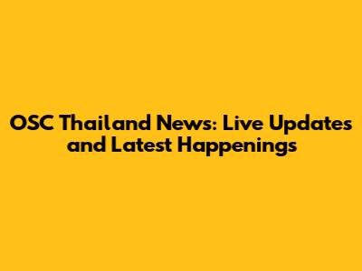 OSC Thailand News: Live Updates And Latest Happenings