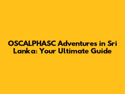 OSCALPHASC Adventures In Sri Lanka: Your Ultimate Guide