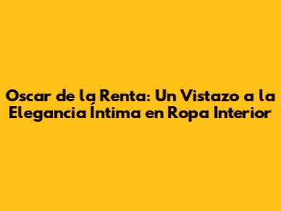 Oscar De La Renta: Elegancia Íntima En Ropa Interior