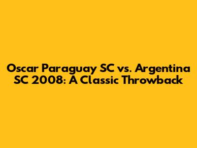 Oscar Paraguay SC Vs. Argentina SC 2008: A Classic Throwback