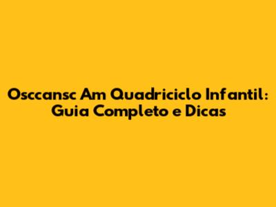 Osccansc Am Quadriciclo Infantil: Guia Completo E Dicas