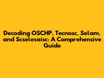 OSCHP, Tecnosc, Selam, And Scselesaisc: Decoding The Terms