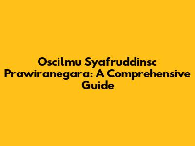 Oscilmu Syafruddinsc Prawiranegara: A Comprehensive Guide