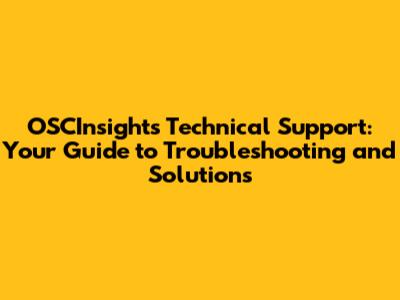 OSCInsights Technical Support: How We Can Help You!
