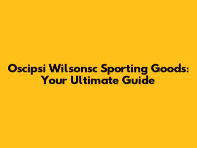 Oscipsi Wilsonsc Sporting Goods: Your Ultimate Guide