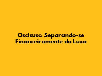 Oscisusc: Separando-se Financeiramente Do Luxo