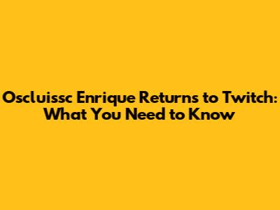 Oscluissc Enrique Returns To Twitch: What You Need To Know