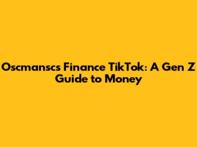 Oscmansc's Finance TikTok: A Gen Z Guide To Money