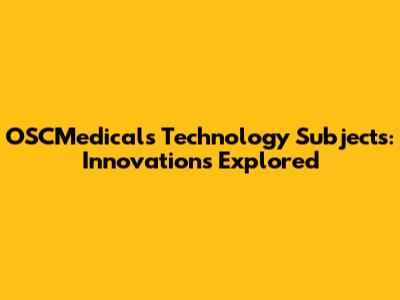 OSCMedicals Tech: Subjects & Innovations Explored