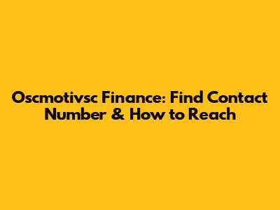 Oscmotivsc Finance: Find Contact Number & How To Reach