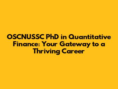 OSCNUSSC PhD Quant Finance: Your Path To Success