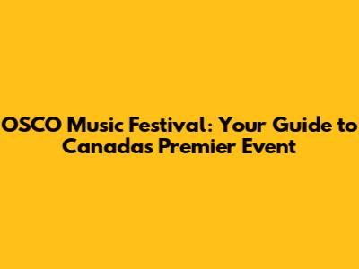 OSCO Music Festival: Your Guide To Canada's Premier Event