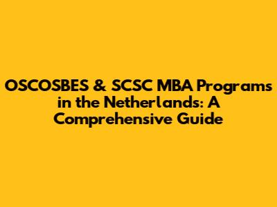 OSCOSBES & SCSC MBA Programs In The Netherlands: A Comprehensive Guide