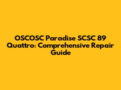 OSCOSC Paradise SCSC 89 Quattro: Comprehensive Repair