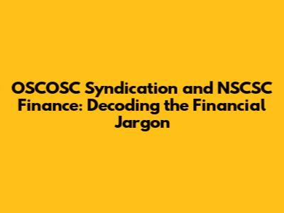 OSCOSC Syndication And NSCSC Finance: Decoding The Financial Jargon