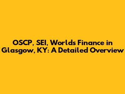 OSCP, SEI, Worlds Finance In Glasgow, KY: A Detailed Overview