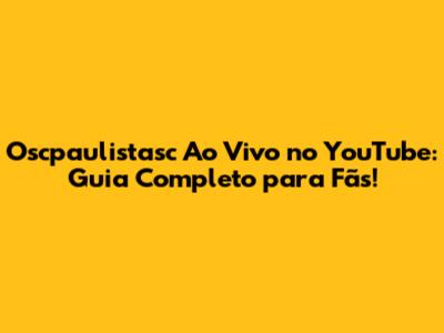Oscpaulistasc Ao Vivo No YouTube: Como Assistir E Mais!