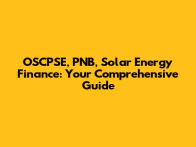 OSCPSE, PNB, Solar Energy Finance: Your Guide
