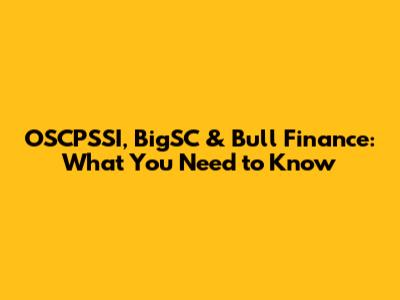 OSCPSSI, BigSC & Bull Finance: What You Need To Know