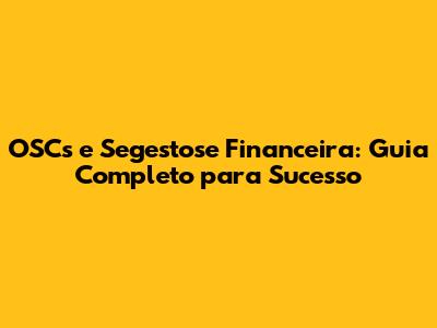 OSCs E Segestose Financeira: Guia Completo Para Sucesso