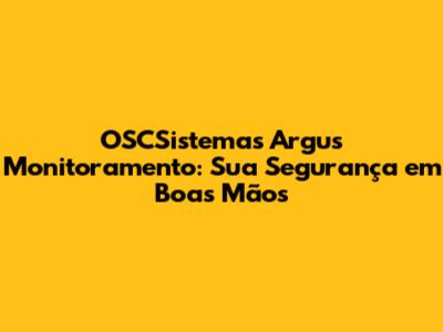 OSCSistemas Argus Monitoramento: Sua Segurança Em Boas Mãos