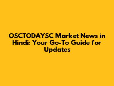 OSCTODAYSC Market News In Hindi: Latest Updates & Insights