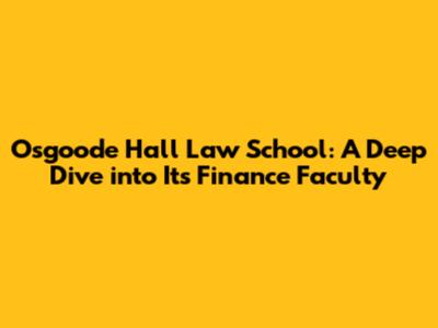 Osgoode Hall Law School: A Deep Dive into Its Finance Faculty