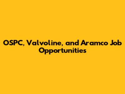 OSPC, Valvoline, And Aramco Job Opportunities