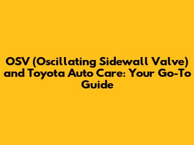 OSV & Toyota Auto Care: What You Need To Know
