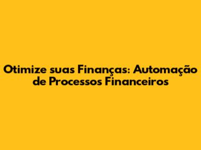 Otimize Suas Finanças: Automação De Processos Financeiros