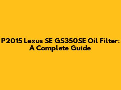 P2015 Lexus SE GS350SE Oil Filter: A Complete Guide