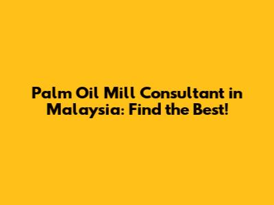 Palm Oil Mill Consultant In Malaysia: Find The Best!