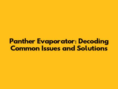 Common Problems with the Pseimelepasse Panther Evaporator