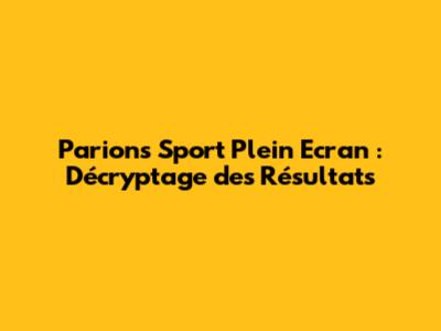 Parions Sport Plein Ecran : Décryptage Des Résultats