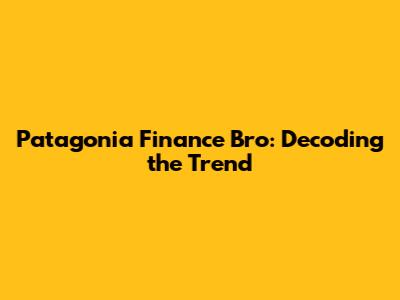 Patagonia Finance Bro: Decoding The Trend