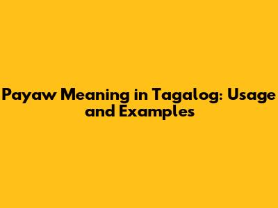 What Does "Payaw" Mean in Tagalog?